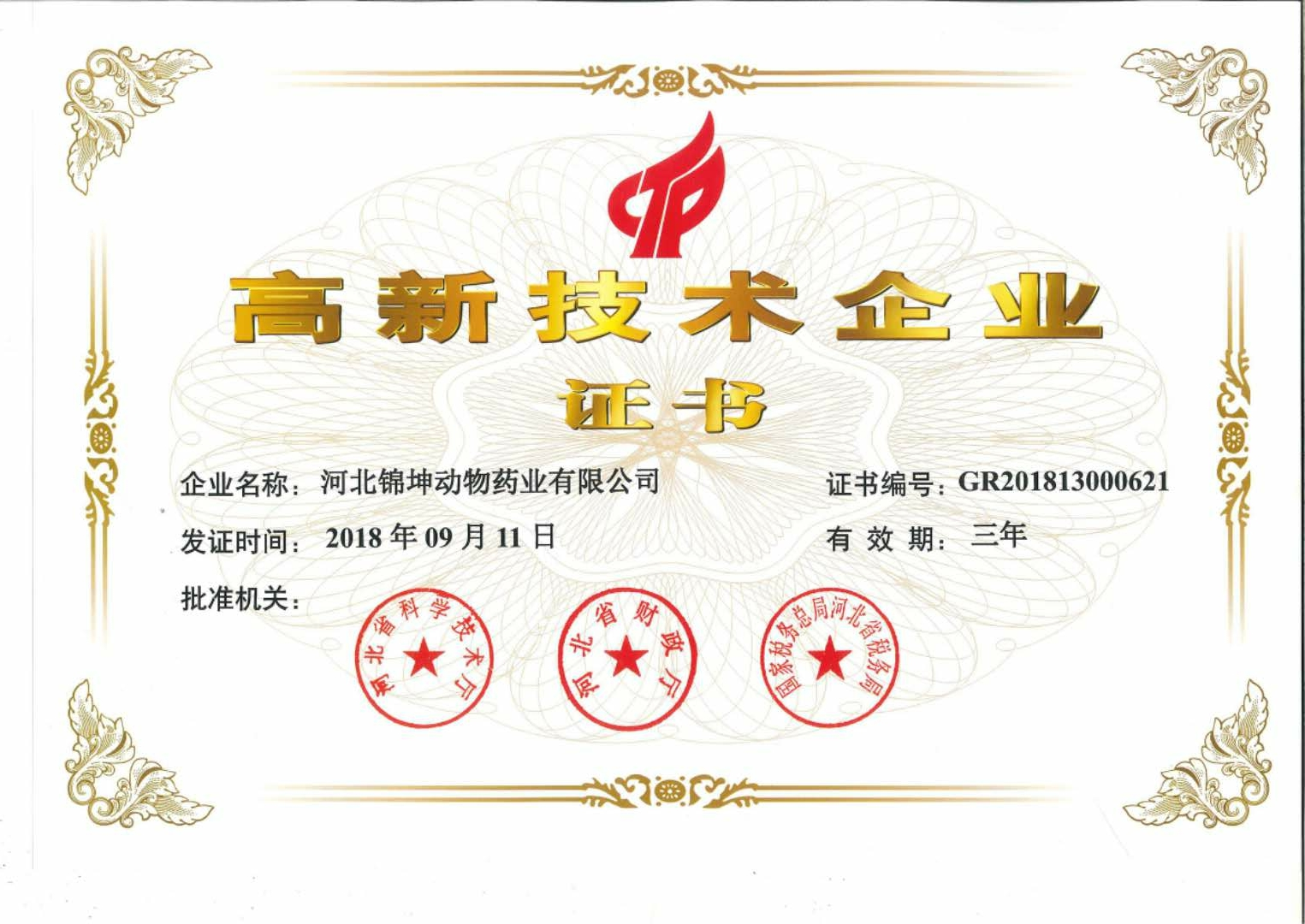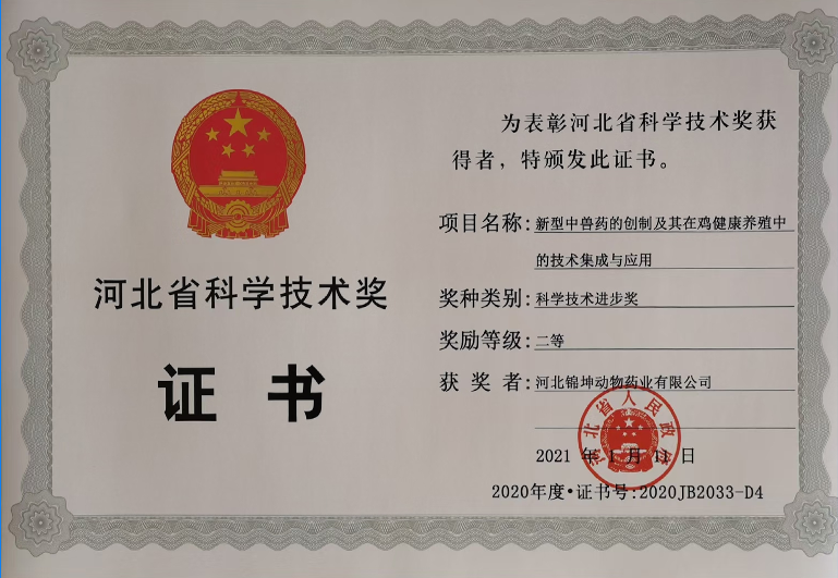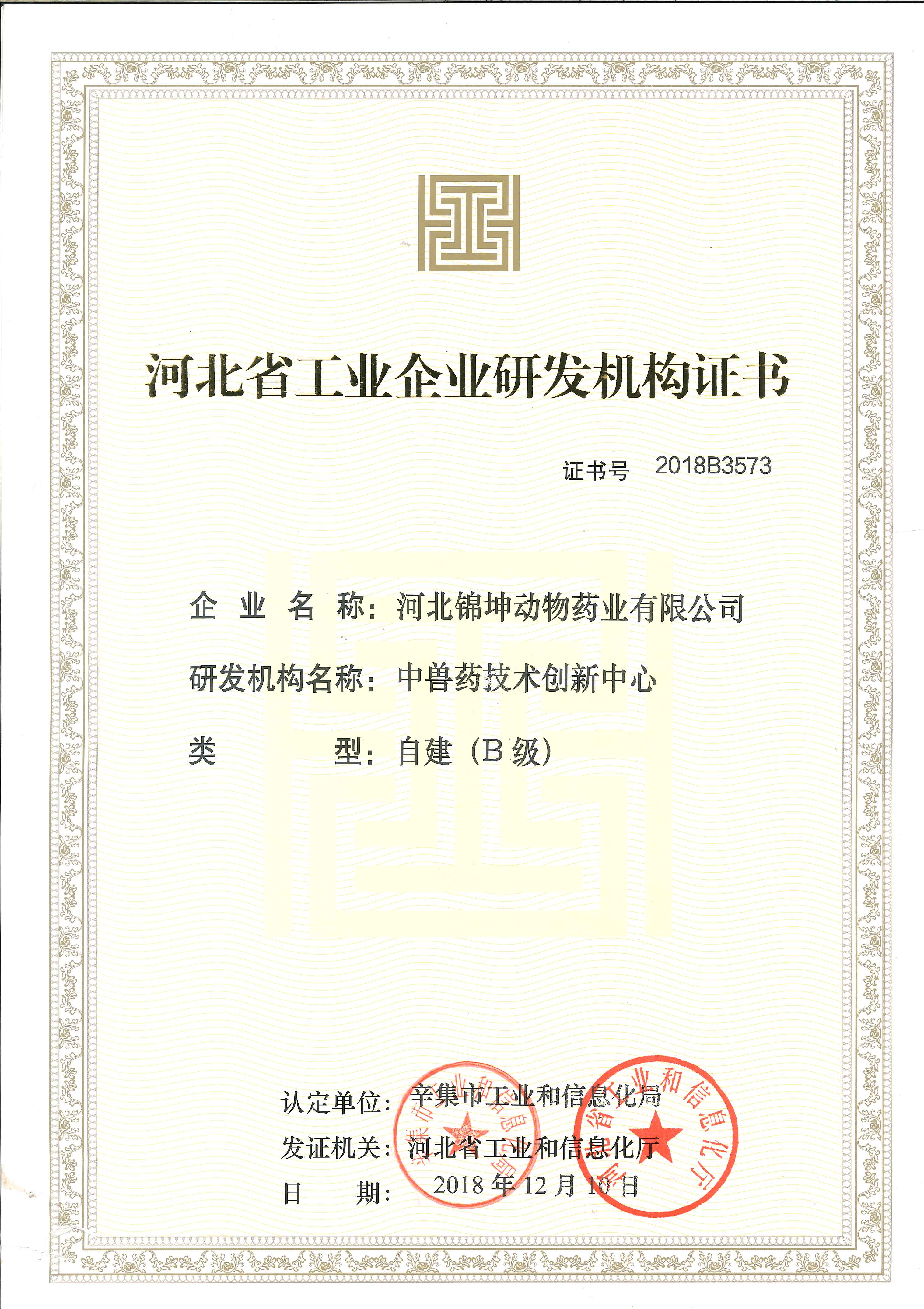 錦坤公司擁有專業(yè)的科研技術(shù)力量和產(chǎn)品研發(fā)能力。自主的研發(fā)機(jī)構(gòu),每年科研投入占產(chǎn)值5%以上。同時(shí)與國(guó)內(nèi)各大專業(yè)院校建立了長(zhǎng)期的合作關(guān)系。擁有多項(xiàng)國(guó)家級(jí)三類新獸藥證書和專利。
